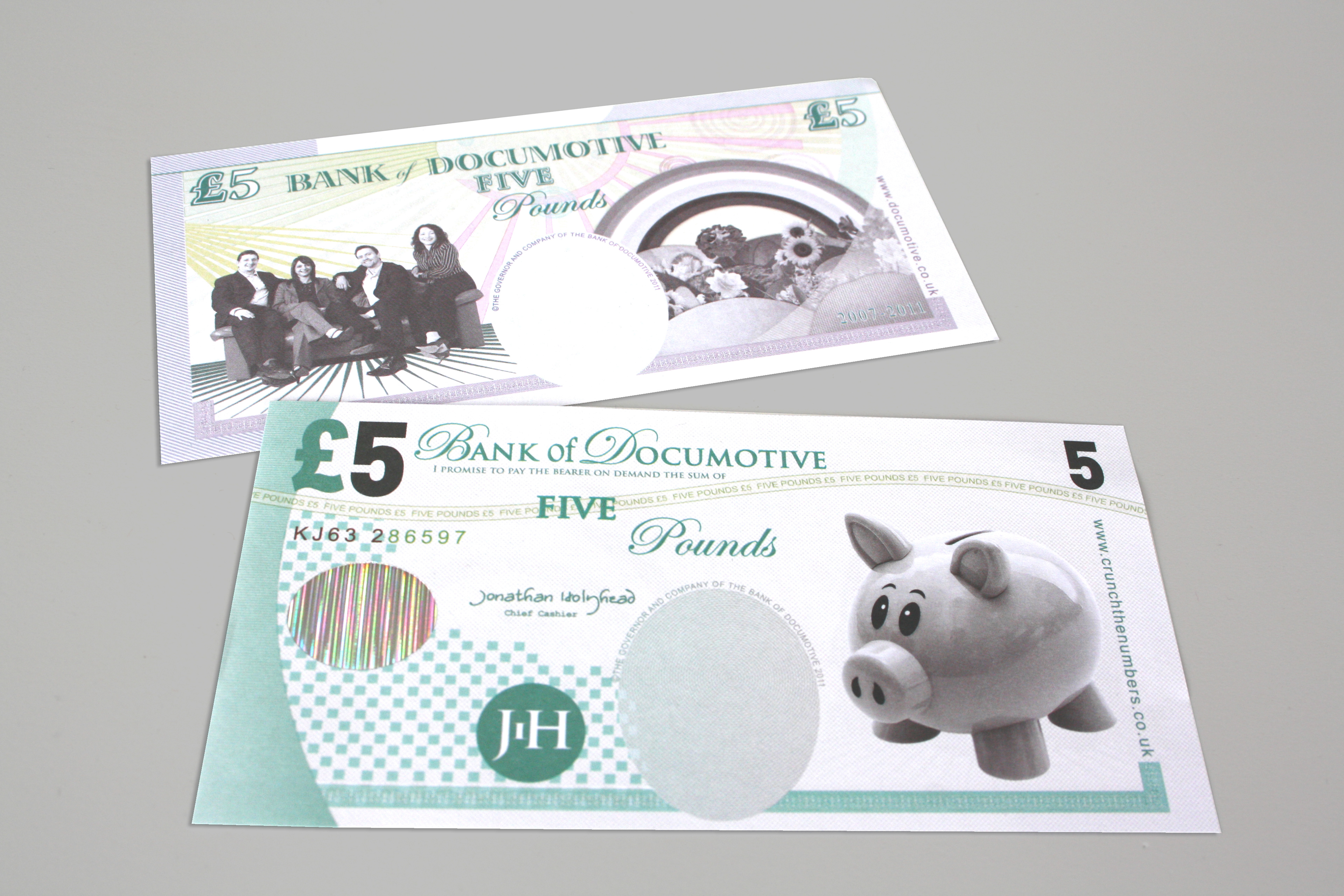 I loved creating these promotional £5 notes for document management and IT specialists Documotive.