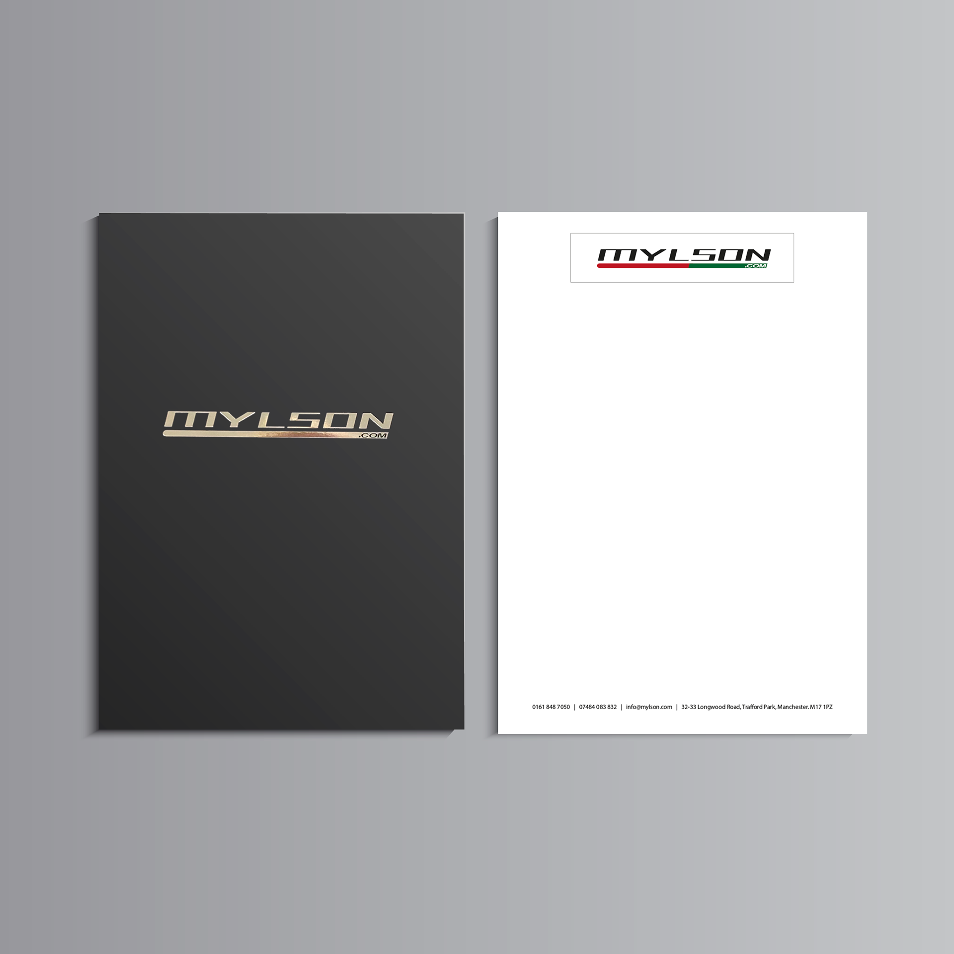 Specialist car dealers Mylson recently moved to larger premises so this called for new signage, document folders and letterheads.