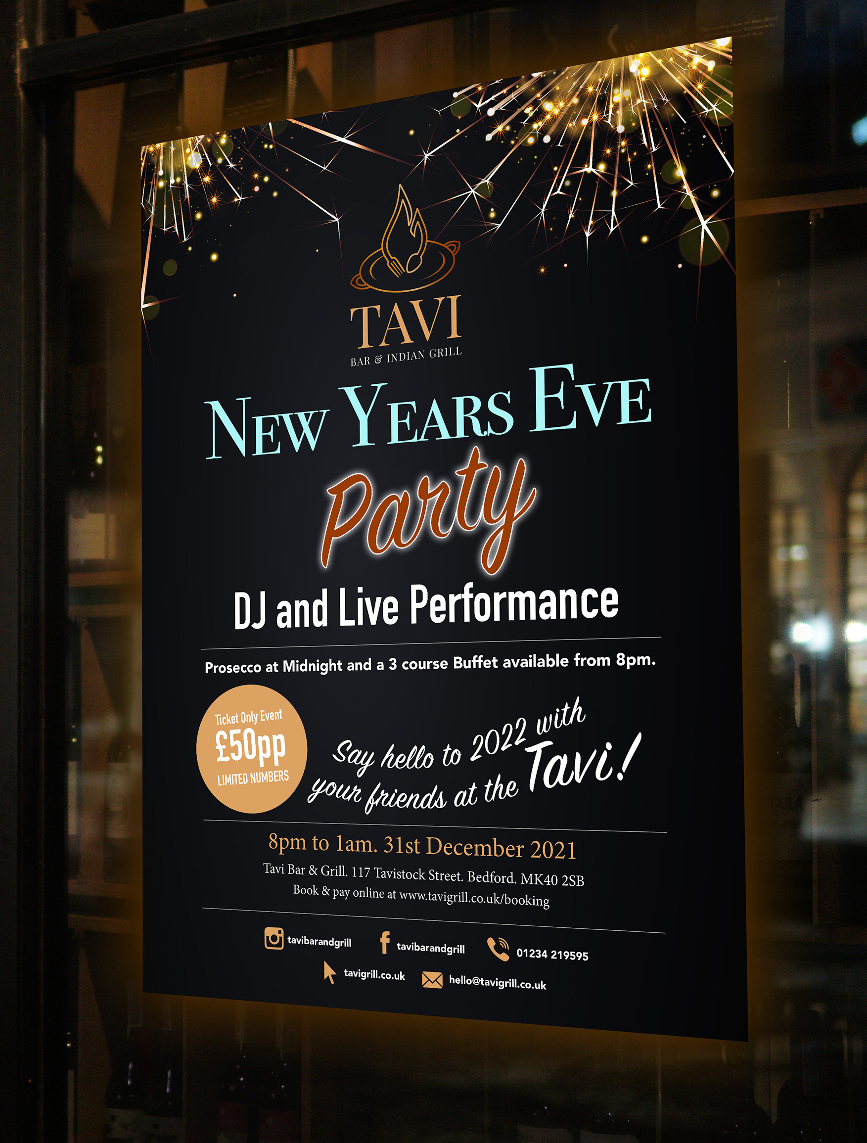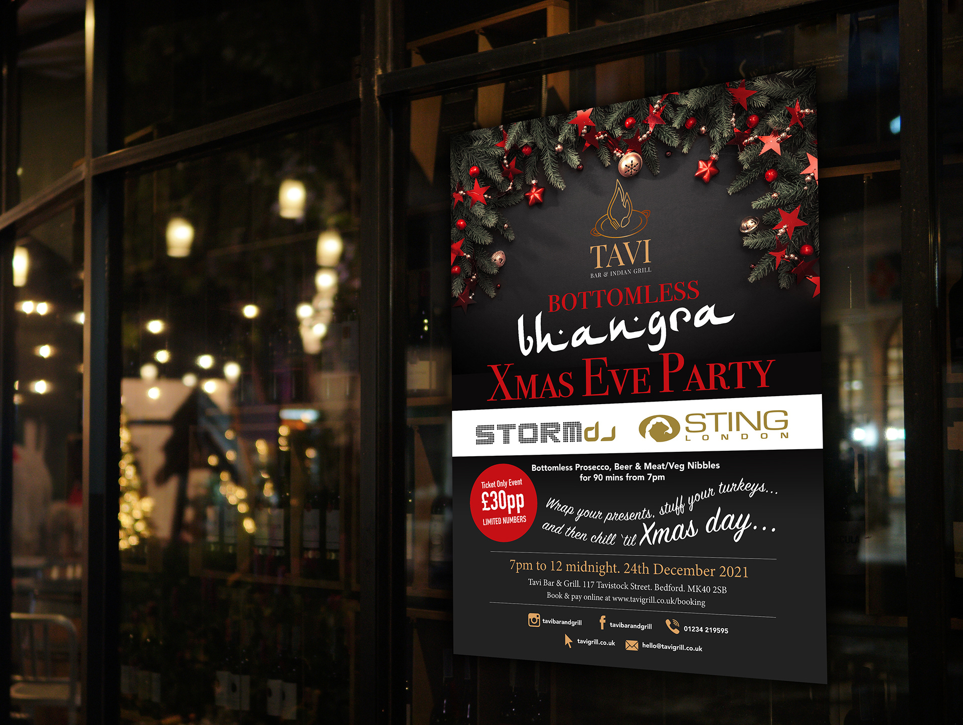 Christmas has arrived at Tavi Bar & Grill in Bedford. I loved designing their Xmas Eve and New Years Eve party posters and flyers, as well as their mouth-watering Christmas Day menu and booking form 🤤🎄🥂