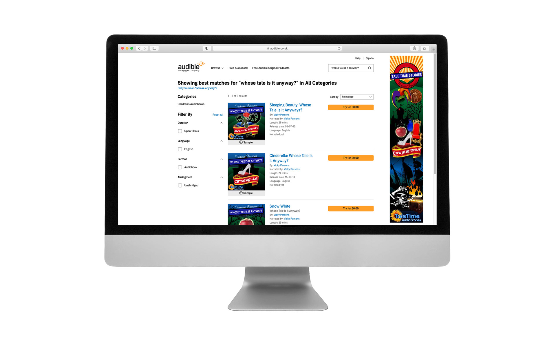 I loved designing this range of audio books covers for Taletime Audio Stories by Victoria Parsons. I then combined the designs to create a website banner advert for the series.